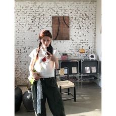 KBNE白色短袖爱心图案T恤小个子显瘦打底衫春夏新款百搭上衣女装