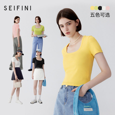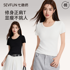 七色纺白色短袖女夏季新款外穿薄款正肩圆领T恤修身显瘦打底上衣