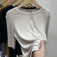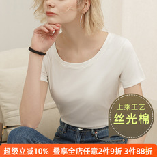 液氨丝光棉白色短袖t恤女夏2025新款显瘦收腰百搭上衣夏天打底衫
