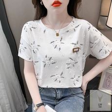 【会buy实拍】减龄巨好看的时髦印花白色短袖宽松显瘦女士t恤夏新