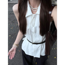 v领白色无袖挂脖衬衫女夏季宽松设计感小众别致法式修身背心上衣