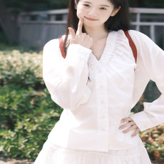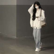 LESS春季新中式长袖衬衫女宽松大版廓形V领通勤白衬衣2O2211310