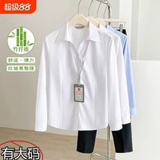 竹纤维气质白色短袖衬衫女士职业正装夏季2024新款V领长袖蓝衬衣