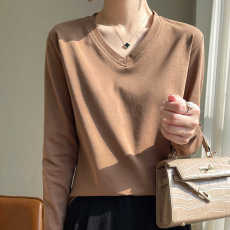 春夏秋新款白色打底衫女v领丝光棉长袖t恤衫宽松大码纯棉上衣卫衣
