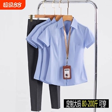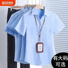 白色短袖衬衫女职业装夏季新款v领薄款正装工作服气质蓝色衬衣女