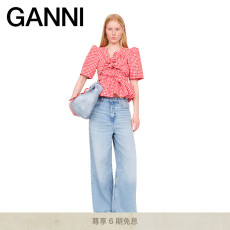 GANNI女装 红白格纹V领扭结法式上衣衬衫 W0843847