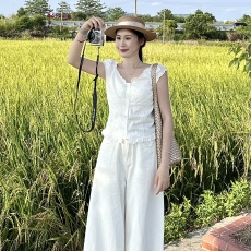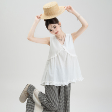 白色法式甜美V领木耳边背心衬衫女夏季新款宽松显瘦百搭无袖上衣
