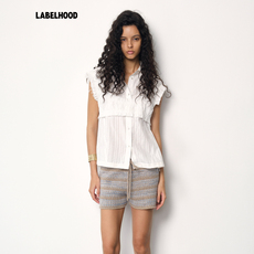 【JUNWEI LIN】蕾虎白妮丝拼褶皱BRA无袖衬衫2025秋季新款女上衣