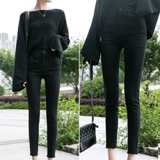 韩系超好看高腰小脚牛仔裤女黑色显瘦紧身提臀美胯百搭九分铅笔裤