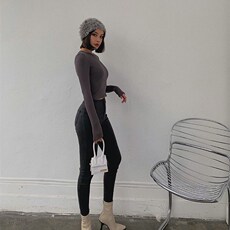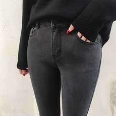 百搭烟灰色牛仔裤女春冬加绒大码高腰修身显瘦弹力紧身小脚九分裤