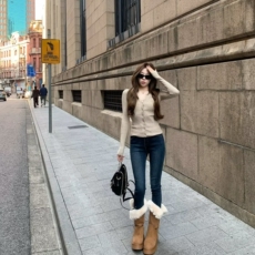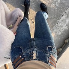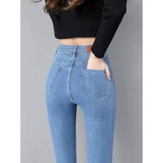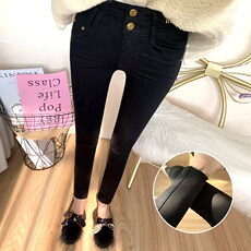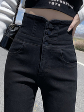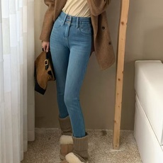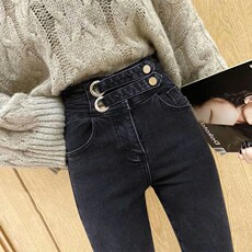 秋冬加绒高腰弹力多扣小脚牛仔裤女修身提臀显瘦百搭热裤九分长裤