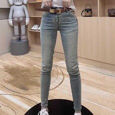 复古磨白紧身牛仔小脚裤女2024秋冬新款小个子百搭九分显瘦铅笔裤
