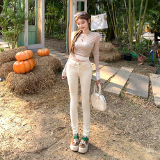 2025秋冬新品白色小脚牛仔裤休闲百搭款紧身裤弹力显瘦九分裤子