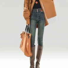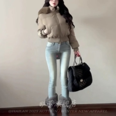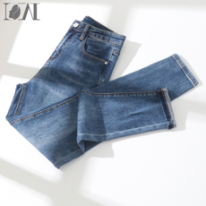 2025春季新款女装时尚百搭拉绒显瘦牛仔裤女小脚直筒九分裤P302