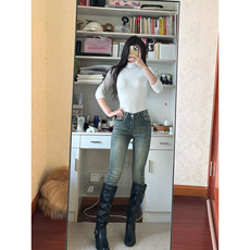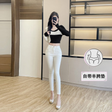 白色提臀牛仔裤女高腰紧身弹力靴裤女九分小脚裤显瘦加绒百搭裤子