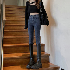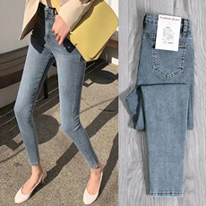 新款2020年秋季牛仔裤女学生百搭修身显瘦高腰铅笔小脚九分裤子潮