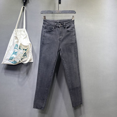 蓝灰牛仔裤女高腰早春时尚弹力百搭修身显瘦九分紧身铅笔小脚裤子