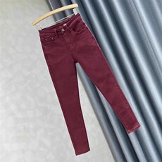 葡萄紫牛仔裤女春秋欧版高腰小脚弹力修身紧身靴裤显瘦百搭九分裤