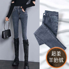 加绒牛仔裤女装新款高腰弹力紧身小脚裤加厚显瘦百搭铅笔九分裤冬