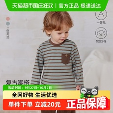 babylove婴幼儿上衣春秋男女宝宝t恤休闲洋气百搭条纹圆领打底衫