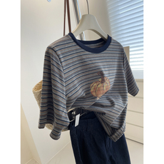 about moon月亮家2025秋季条纹清新T恤打底衫女宽松百搭长袖52063