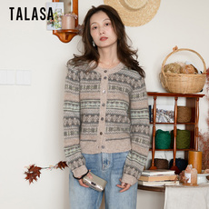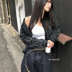 2025秋冬新款氛围感韩系撞色豹纹复古系扣百搭短款针织毛衣开衫女