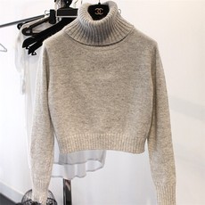 高领毛衣女秋冬外穿超短款高腰上衣打底衫宽松百搭加厚小款羊毛衫