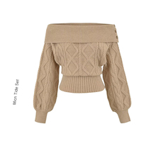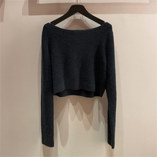 小众2025秋冬新款一字领露肩黑色针织衫打底百搭长袖短款毛衣女潮