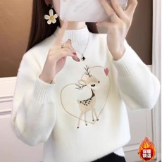 秋冬黄金貂绒加厚半高领学生初中高中女大童百搭针织毛衣套头短款