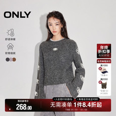 短款高级韩式卡通小狗提花圆领毛衣女秋冬宽松百搭花边针织衫上衣