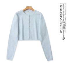 春秋亮丝针织开衫女宽松韩版超薄百搭显瘦短款针织圆领羊毛衫外套