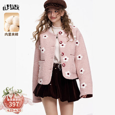 妖精的口袋毛绒花朵粉色棉衣女2026年冬季新款巨好看的夹棉厚外套