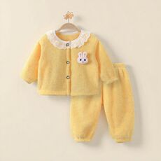 婴儿童家居服套装雪粒绒男童女宝冬季开衫加绒加厚保暖睡衣棉服