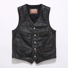 真皮马甲男美国进口茶心水牛皮复刻rrl牛皮夹克皮衣复古机车背心