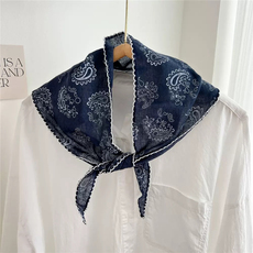 法式复古棉质腰果小方巾女清新薄款护颈小围巾外搭配衬衫丝巾领巾