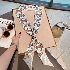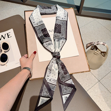 小众个性腰果花长条丝巾领巾女时髦百搭细窄护颈颈巾系腰飘带头巾
