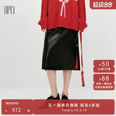 【商场同款】HPLY荷比俪2026春新款黑色蛋白皮包臀长款半裙半身裙