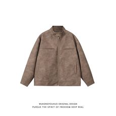 悟空有货复古做旧棕色短款皮衣外套男女美式潮牌宽松情侣休闲夹克
