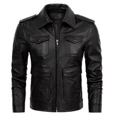 2025新款软皮衣男士休闲外套短款春秋时尚翻领大码复古巴恩风夹克