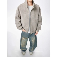 美式复古潮牌夹克外套男高端春秋美拉德仿麂皮绒宽松短款工装夹克