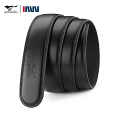 男士商务针扣真皮皮带整张牛皮切割连体自动无头腰带条二层牛皮带