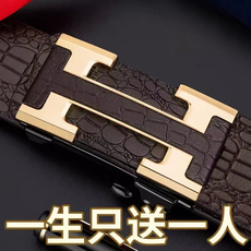 男士真皮皮带鳄鱼纹无牙内穿自动扣新款高档白领百搭商务牛皮腰带