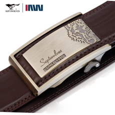 啄木鸟头层牛皮牛头铜扣皮带真皮裤带男休闲商务中年自动扣皮带