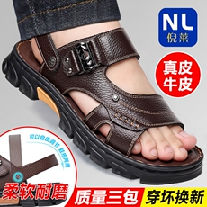 头层牛皮夏季男士凉鞋真牛皮休闲沙滩鞋牛筋底防滑中老年凉拖鞋子