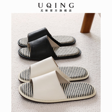 居家皮拖鞋女士夏季情侣室内家居防滑防臭亚麻拖鞋美容院家用男士