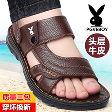 花花公子男士凉鞋2026新款夏季真皮休闲外穿沙滩鞋防滑两用凉拖鞋