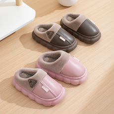 冬季保暖厚底家居室内棉拖鞋女面防水厚底拖鞋拖鞋棉拖 皮拖鞋男