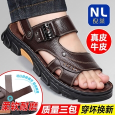 啄木鸟凉鞋男头层牛皮夏季新款休闲沙滩鞋真皮软底防滑外穿凉拖鞋