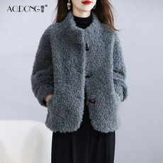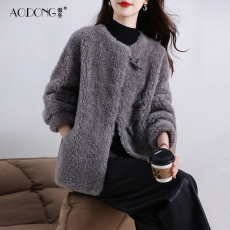 海宁颗粒绒皮草外套女短款一体保暖圆领牛角扣时尚羊羔毛大衣冬季
