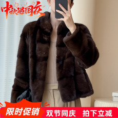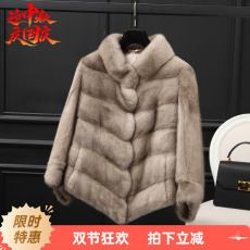 水貂皮大衣整貂皮草外套女貂毛海宁新款立领短款皮草貂绒时尚
